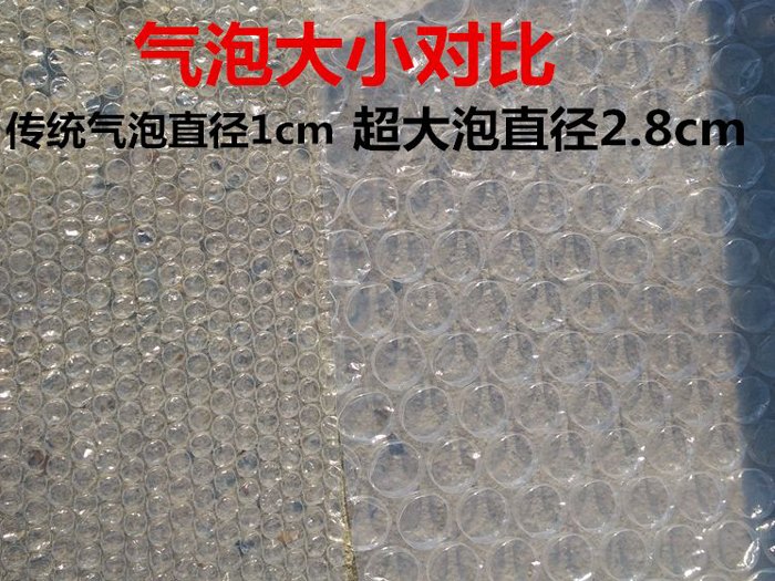 同樣是塑料包裝材料拉伸膜適用于木托盤或者電子產品的外部包裝,而氣泡膜適合用于玻璃制品、化妝品等易碎物品運輸中使用。是一種質地輕、透明性好、無毒、無味的新型塑料包裝材料,可對產品起防濕、緩沖、保溫等作用。由于氣泡膜中間層充滿空氣,所以體輕,透明、富有彈性,具有隔音,防震防磨損的性能。 論及氣泡膜在工業包裝中的重要性,我們先來論證一下氣泡膜的特點及作用,氣泡膜(Air Bubble Film) ,又稱氣墊膜、氣珠膜、氣泡布、氣泡紙、泡泡膜、氣泡薄膜、氣墊薄膜。氣泡膜,是以高壓聚乙烯為主要原料,再添加增白劑、開口劑等輔料,經230度左右高溫擠出吸塑成氣泡的產品。
