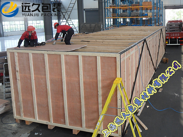當出口運輸的機械設備長、寬、高超均過2000mm,或重量達到6000kg以上時,我們的木箱設計師在設計木箱結構時,就需要加上鋼結構來增加強度,這種類型的木箱我們就稱之為鋼結構框架木箱,其使用的鋼結構大小也根據木箱所裝載的設備重量和形狀來決定,鋼結構框架木箱理論上內裝物最大重量可達到20000kg以內。 全木制框架結構的木箱在設備起吊時會受到的來自鋼絲繩的擠壓應力,木箱整體會在起吊裝的過程中瞬間被拉力擠壓變形。鋼結構框架木箱的頂部用到槽鋼、方鋼、扁鐵、角鐵等鋼鐵構件的橫向支撐,更強大的防護讓鋼結構框架木箱整體在起吊裝的過程中不受拉力的變形,鋼結構框架木箱的出現解決了重量大的物體運輸中的安全問題。 鋼結構框架木箱其特征在于金屬內框的上下兩面設有橫向支撐,前后兩面設有垂直支撐,兩端面設有十字斜拉支撐。鋼結構框架木箱的承載能力介于木箱與鐵箱之間,是為了滿足客戶的防護包裝需要而設計研發出來的,就是在木箱的基礎上增加了鋼架結構以增強其承載防護能力,鋼結構框架木箱主要用于大型及超大型的重型設備出口運輸包裝。 鋼結構框架膠合板木箱是一海運方式運輸,因而鋼結構框架膠合板木箱外徑尺寸會受限于集裝箱的內徑,所以鋼結構框架膠合板木箱的外徑不得大于集裝箱內部的長、寬、高尺寸,大型出口包裝箱就是保護貨物在出口流通過程中安全的抵達目的地,和所有《大型出口框架滑木包裝箱》一樣既是產品制造的終點,又是物流運輸的起點,它具有承上啟下的作用。