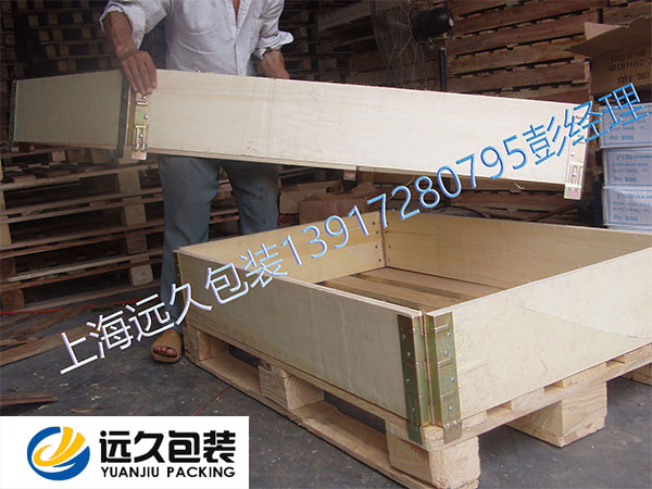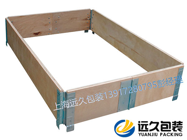 圍框是由四片或六片木板和合頁組成的一種標準的物流器具,是為在免熏蒸托盤上堆放緊固件、金屬球、沖壓件等不規則產品而特定設計的,一款可反復循環使用的新型包裝,是軸承類五金產品出口到歐洲產品包裝的不二選擇。 圍框的結構:合頁固接于相鄰的兩片木板的角部,頁體下部具有向下延伸并向外彎的合頁腳,合頁腳內側套接于托盤的角部外側或下一段圍板轉角處。圍框的長、寬根據托盤的尺寸確定,由于無釘化作業,顯著地降低了工人在裝卸過程中發生工傷的風險。 圍框可分為木圍框和膠合板圍框,兩者的結構一樣,唯一的區別也是最大的區別就是材質不同,膠合板圍框是用高強度的膠合板制作而成,優點是出口免熏蒸,在出口運輸的時候,省去了許多的中間環節,節省了大量的時間,由于材質的本身特性等多方面原因,膠合板圍框一次性使用居多,膠合板圍框不利于回收,回收利用率不高,所以市面上很少有流通的二手膠合板圍框。 膠合板圍框的長、寬根據托盤的尺寸確定,使用層數可根據承載物的高度來決定,最大限度地提高箱體空間的利用率。運輸時可將膠合板圍框的圍板折疊為雙層或四層相連接的膠合板板結構擺放在托盤上,大大地減少貯運體積,有效的降低運輸成本。