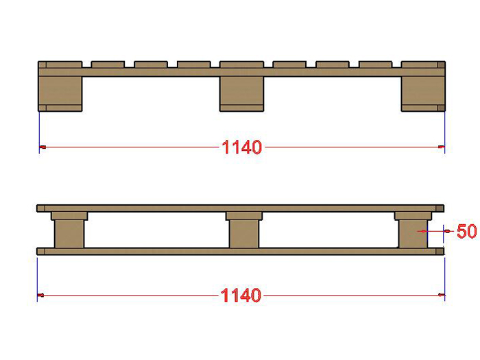 歐標(biāo)托盤系列CP 3號化工木托盤各部件板材規(guī)格及性能 木托盤構(gòu)成部件 板材15塊,實(shí)木或合成腳塊9塊,托盤釘81顆。 嚴(yán)格按歐標(biāo)托盤技術(shù)規(guī)范制造。 部件名稱 規(guī)格 數(shù)量 承載重量 靜載3000kg 動載1500kg 墊塊 120*80*80 9 木托盤材質(zhì) 優(yōu)質(zhì)松木 底板 1140*120*18 3 結(jié)構(gòu) 雙向四面進(jìn)叉結(jié)構(gòu) 橋板 1140*100*22 3 適用范圍 與所有(傳統(tǒng)的)標(biāo)準(zhǔn)物流裝載工具、工業(yè)卡車和倉儲系統(tǒng)兼容。用途:主要用于運(yùn)輸袋裝貨物、紙箱和其他類型箱。 面板 1140*120*18 3 托盤處理方法(熱處理) 熱處理/熏蒸木托盤是指經(jīng)過除害處理,可以隨出口貨物出境的木質(zhì)包裝托盤(木托盤),并加施IPPC標(biāo)識 面板 1140*80*18 6 證書 出口時(shí)可根據(jù)客戶需要,提供熱處理消毒證書,并加施IPPC標(biāo)識 優(yōu)質(zhì)螺紋釘 64mm 81顆 CP 3號化工木托盤優(yōu)點(diǎn) 精確度高、不易變形,用高強(qiáng)度木托盤專用螺紋釘連接,不會起釘,牢固性好。 CP 3號化工木托盤外形尺寸:1140*1140*138㎜ 表格制作人:上海遠(yuǎn)久包裝托盤包裝工程師——彭百桂